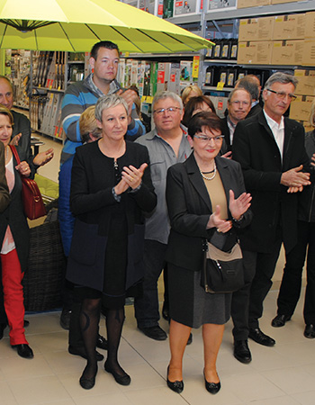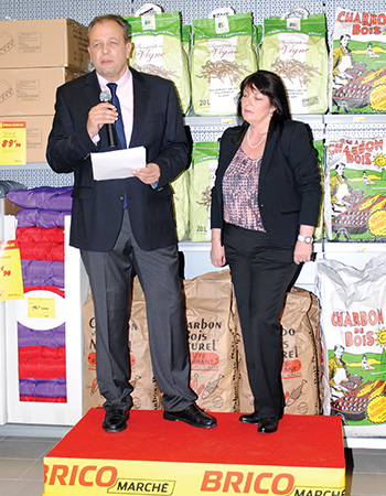 Ce soir là, tout était parfait, même le podium « bricolé » pour l’occasion avec deux palettes supporta jusqu’au bout le défilé des orateurs venus discourir pour cette inauguration du nouveau BRICOMARCHE de Coutras. Les hôtes, Michel et Claudine Rocailleux ouvraient les portes de leur magasin sur plus de trois mille mètres carrés d’espace dédié au bricolage, jardinage, décoration et animalerie. Devant une assemblée venue nombreuse et accueillie en musique par un excellent groupe de jazz, Michel Rocailleux prenait la parole et présentait le nouveau concept du magasin qui, après de longs mois de travaux, n’a pourtant jamais fermé ses portes afin d’être toujours proche et au service de sa clientèle.