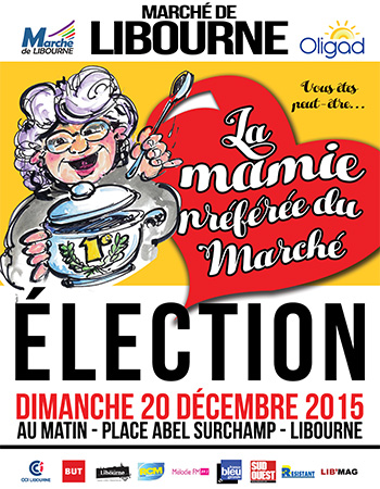 Pour les commerçants du marché de Libourne, elles sont toutes super c’est mamies et, pour en préférer une, la tâche s’avère bien difficile. Pourtant il faut bien désigner une gagnante au concours. Ici, pas de défilé sous les projecteurs pour élire celle qui deviendra la « Mamie Préférée du Marché de Libourne » ce seront les papilles gustatives des membres du jury qui feront la différence en goûtant les plats en sauce et tartes sucrées confectionnés avec les produits du marché et de saison par ces cordons-bleus et leurs recettes secrètes. Sous la houlette du Président Dominique Bazin représentant OLIGAD, l’association de service à la personne de Libourne et sous la fourchette experte de Raymond Magne, Président de l’association d’animation du marché, aidé de trois autres membres aux réputations de fines gueules, mais aussi du public qui goutera et sera sondé par applaudimètre; le verdict tombera en fin de matinée. Maître CHOY, huissière de Justice dévoilera l’identité de la nouvelle « Mamie Préférée du Marché de Libourne ». Ne manquez pas cette animation sympathique et gratuite dimanche matin, 20 décembre Place Abel Surchamp. Et, s’il est encore temps, pourquoi ne pas vous inscrire et concourir dans la bonne humeur à cette compétition où, comme à l’Ecole de Fans, toutes seront gagnantes.