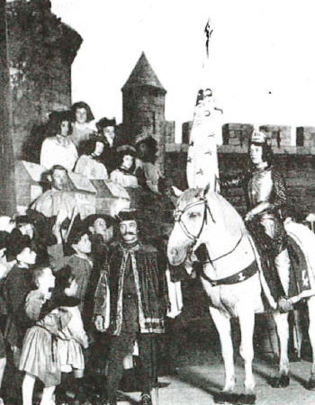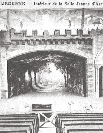 Peu après cette Passion; les Bleus de Saint-Ferdinand avaient également présenté en spectacle une « Jeanne-d’Arc», qui avait attiré les foules de toute la région et dont on parlait encore. C’est dire l’importance des moyens matériels (dont aujourd’hui il ne reste plus grand chose) qui avaient été mis en oeuvre et dont pouvait encore disposer cette salle à l’époque dont je parle! Certes, en y entrant, le public n’était point séduit par son luxe et son élégance. Il s’agissait d’une vaste bâtisse aux murs de pierre nue, qui était plafonnée mais dont le seul ornement (!) étaient des deux côtés et se faisant face, les arcs-boutants apparents de sa charpente. Lesquels étaient reliés sur toute la largeur par des barres métalliques. Son parquet était en pente pour permettre une bonne visibilité et elle était garnie de longues banquettes rembourrées où l’on pouvait se serrer ce qui, avec le balcon du fond permettait une capacité qui pouvait aller jusqu’à plus de cinq cents places assises.