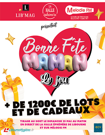 À l’occasion de la Fête des Mères, LIB MAG, en partenariat avec MÉLODIE FM et la Halle Éphémère de Libourne, lance une opération pleine de surprises et de cadeaux : un grand jeu concours ouvert à tous les clients des commerçants participants !