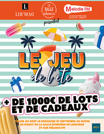 Pour fêter l’été, LIB MAG, en partenariat avec MÉLODIE FM et la Halle Éphémère de Libourne, lance une opération pleine de surprises et de cadeaux : un grand jeu ouvert à tous les clients des commerçants participants !
