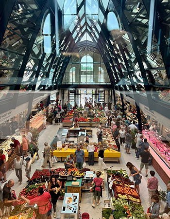 - Je peux vous dire que pour être une réussite, c’est une belle réussite. Tout en gardant les façades style art déco du début du siècle dernier, en les rénovant, c’est carrément une vraie révolution architecturale que connait le cœur de ville. C’est une vraie splendeur ce que les créateurs et concepteurs nous ont fait. Vous pénétrez dans un vrai temple de la bonne bouffe, une arche inversée faisant penser à un immense bateau renversé. L’Arche de Noé, à l’envers mon Ami !